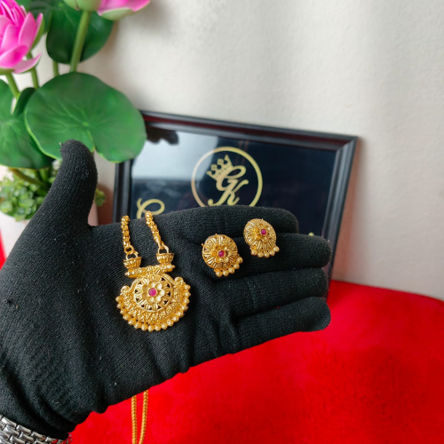 Bring elegance and charm to your jewelry collection with this Premium Gold Plated Pendant Set, featuring a beautifully detailed shankh (conch shell) design that blends tradition with a modern twist. The set is expertly crafted to provide the rich look of real gold while remaining affordable and lightweight.